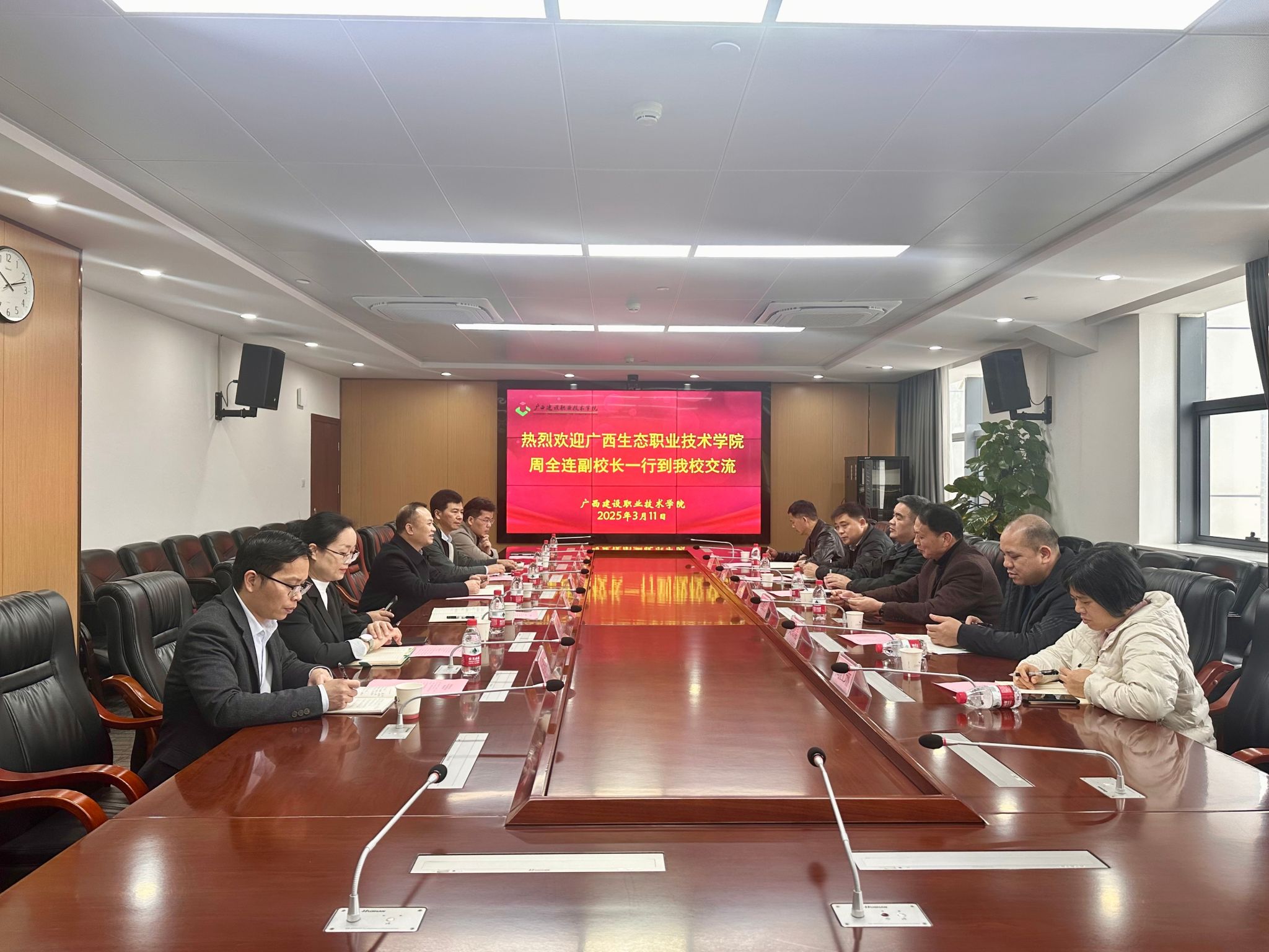 广西建院3月11日讯(后勤管理处 杨琼)3月11日上午,广西生态工程职业技术学院副校长周全连一行6人来乐鱼全球最大体育平台_乐鱼(中国)就后勤管理工作调研交流。乐鱼全球最大体育平台_乐鱼(中国)副校长梁伟,学校后勤管理处(安全保卫处)负责人及相关人员出席座谈会。会议现场梁伟副校长对周全连副校长一行的到来表示热烈欢迎,并介绍了乐鱼全球最大体育平台_乐鱼(中国)的基本情况。梁伟副校长表示,后勤管理工作是学校平稳运行的重要根基,其服务效能直接影响师生日常学习生活的安全性与舒适度,更是构建安全、舒适校园生态的关键支撑,...