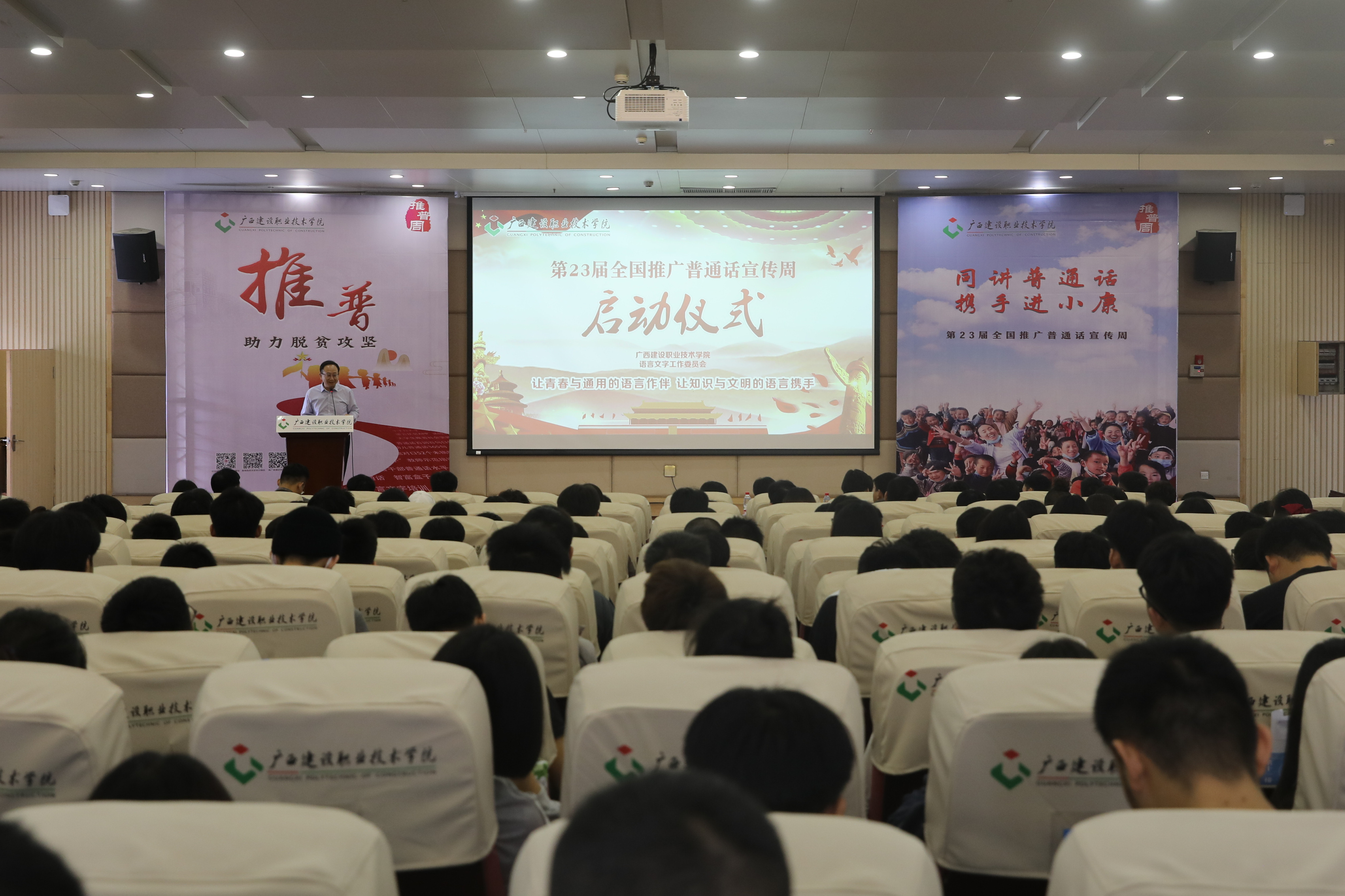 广西建院10月27日讯(文/公共基础部 盛丽梅 院记者团 霍玮 图/院记者团 吴龙)10月26日上午,乐鱼全球最大体育平台_乐鱼(中国)2020年第23届全国推广普通话宣传周(以下简称推普周)启动仪式在四教一楼报告厅举行。学院党委副书记曾繁雄出席仪式,...