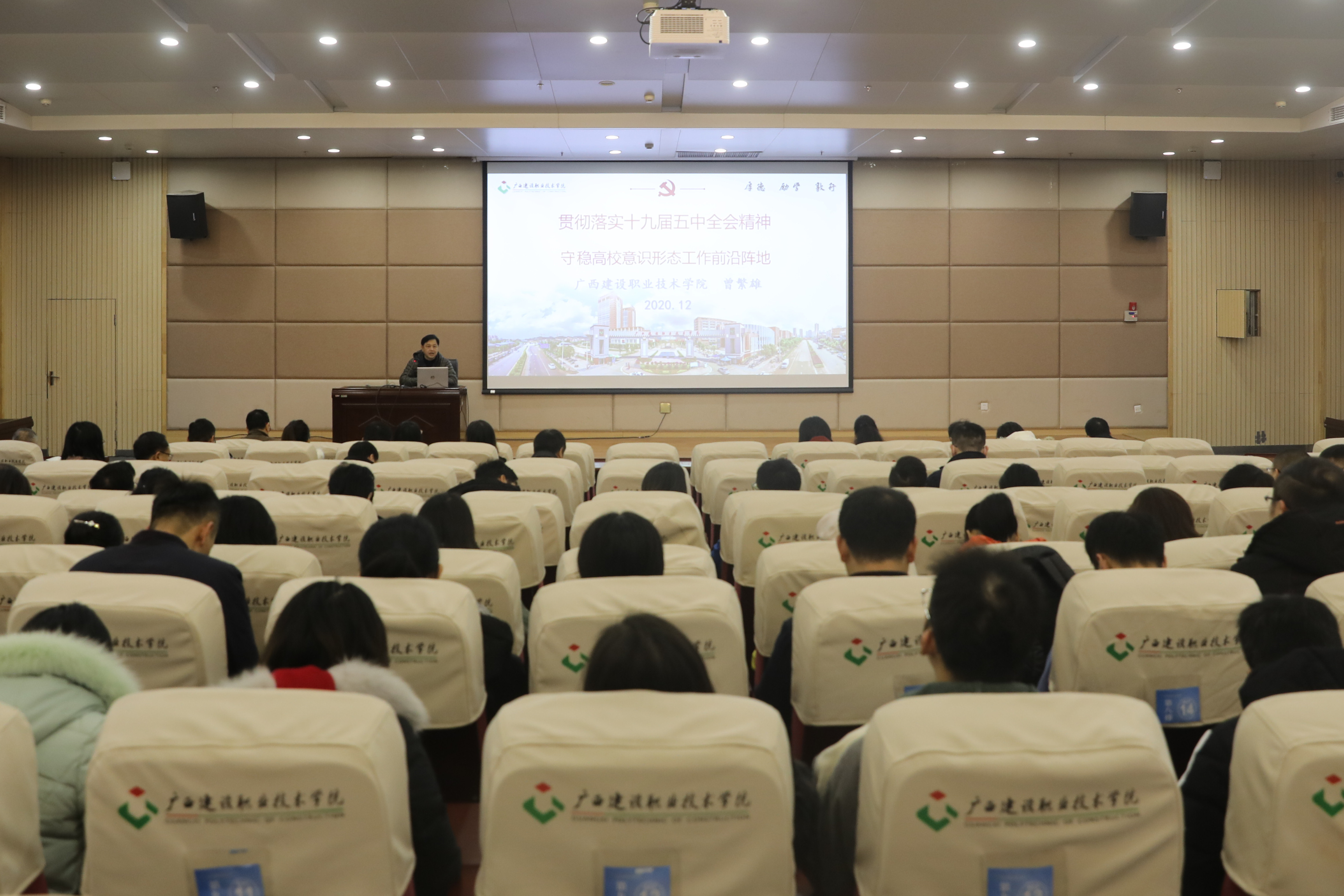 广西建院12月18日讯(党委宣传部 陈熙)为深入学习宣传贯彻党的十九届五中全会精神,进一步增强乐鱼全球最大体育平台_乐鱼(中国)党员干部职工的政治素质和党性修养,12月17日上午,学院党委副书记曾繁雄在四教一楼报告厅讲授专题党课。 曾繁雄副...