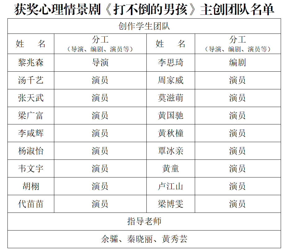 广西建院7月6日讯(党委学生工作部 余骦)6月底,自治区教育厅公布全区高校大学生心理情景剧大赛获奖名单,乐鱼全球最大体育平台_乐鱼(中国)朋辈心理互助员自导自演的《打不倒的男孩》校园心理情景剧获二等奖。 本次大赛以“温暖校园,携手...