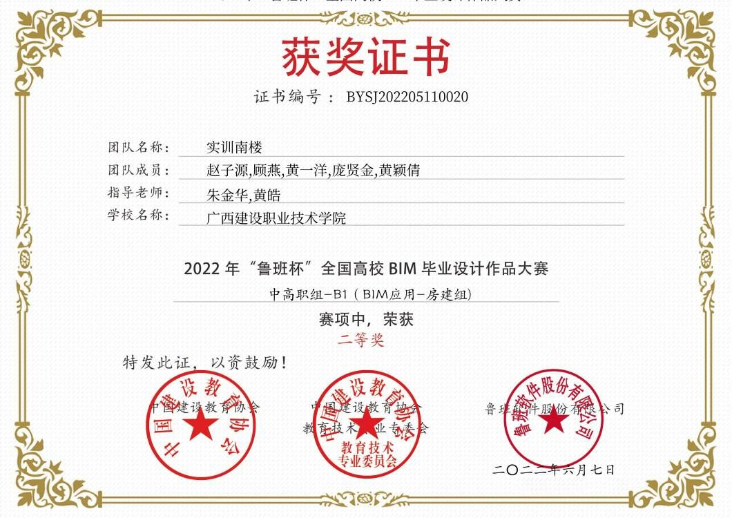 广西建院7月5日讯(土木工程学院 韦毅)近日,由中国建设教育协会主办,中国建设教育协会教育技术专业委员会、浙江同济科技职业学院、鲁班软件股份有限公司承办的2022年“鲁班杯”全国高校BIM毕业设计作品大赛总...