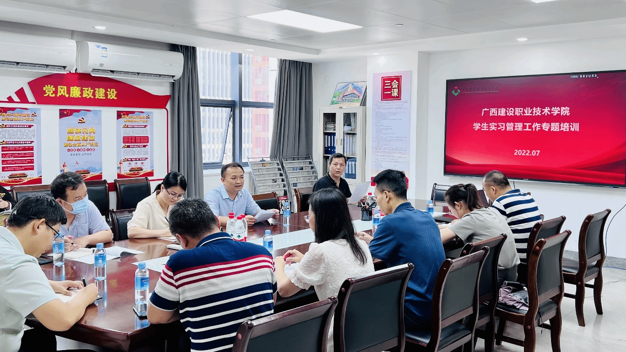 广西建院7月15日讯(教务科研处 文/邬金池 图/李莹)7月14日下午,在行政办公楼719会议室教务科研处组织召开2022年学生实习管理工作专题培训。学校二级学院分管实习工作的副院长、负责实习工作的老师参加了专题...