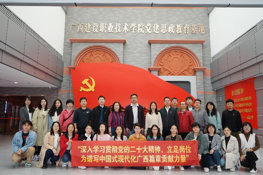 广西建院3月6日讯(设备与环境学院 文/李悉娴 图/徐晓雪)为深入学习党的二十大精神,贯彻落实习近平总书记对广西“五个更大”的重要要求,学校副校长柏挺在学校党建思政教育基地作了题为《抢抓机遇,勇担使命,以二...