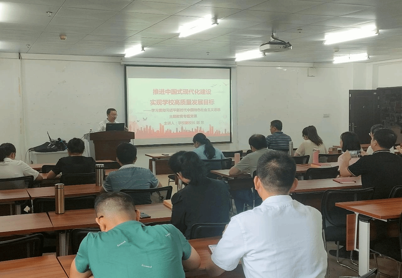 广西建院6月30日讯(市政与交通学院 韦新)6月28日,学校副校长谢东在1教910会议室为市政与交通学院党总支全体党员作题为“推进中国式现代化建设 实现学校高质量发展目标”的主题教育专题党课。谢东副校长回顾了中国共产党的历史,并指出,正是因为中国共产党的成立,深刻改变了近代以后中华民族发展的方向和进程,深刻改变了中国人民和中华民族的前途和命运。谢东副校长从党的二十大报告出发,从五个方面刻画了中国式现代化发展的特征,...