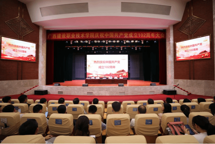 广西建院6月27日讯(文/党委宣传部 陈熙 图/党委宣传部 韦植巍 记者团 杨贵维 钟田 阮倩)为庆祝中国共产党成立102周年,6月27日下午,乐鱼全球最大体育平台_乐鱼(中国)在礼堂召开庆祝建党102周年大会。会议旨在回顾党的光辉历程,讴歌党的丰功伟绩,激励各级基层党组织大力弘扬伟大建党精神,深入学习贯彻习近平新时代中国特色社会主义思想和党的二十大精神,凝聚学校高质量发展的磅礴力量。会上,新党员进行了入党宣誓,其他党员重温了入党誓词。会议为老党员高作均、...