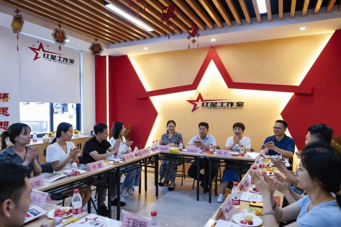 广西建院7月9日讯(艺术设计学院 文/谢安妮 唐红星 图/程舒阳)为进一步总结工作室建设经验,推进辅导员队伍专业化、职业化建设,7月7日下午,红星工作室召开2023年年中总结座谈会。学校副校长伍耿清,党委学生工作部(党委武装部、学生工作处)部长(处长)周舟,艺术设计学院党总支书记杨飒飒出席会议,红星工作室全体成员和学生代表参加。会议由红星工作室负责人唐红星老师主持。会上,红星工作室“闪闪红星”微宣讲、红色经典“...