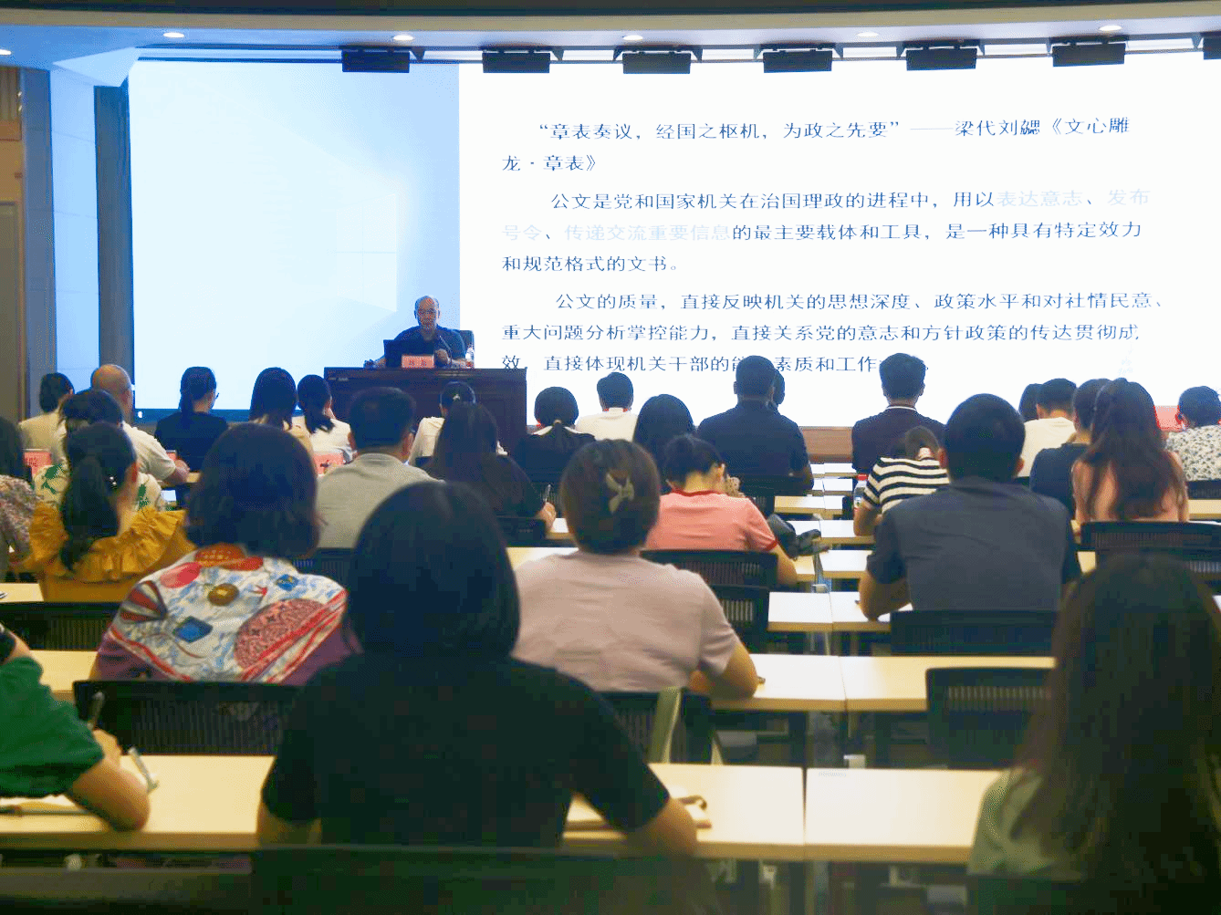 广西建院7月7日讯(党委办公室 陈俊有)7月6日上午,学校邀请南宁师范大学文学院刘儒副教授到校以“公文写作方法与技巧”为主题,开展公文写作专题培训。各部门、各二级学院分管负责同志、相关行政人员等100余名干部职工参加了培训。培训现场培训中,刘儒副教授结合多年来的理论研究和实践经验,围绕公文文种、格式、结构,对公文写作的基本要求、方法、规律和技巧等方面进行了深入浅出、系统全面的讲解。刘儒副教授认为,写好公文十分重要,...