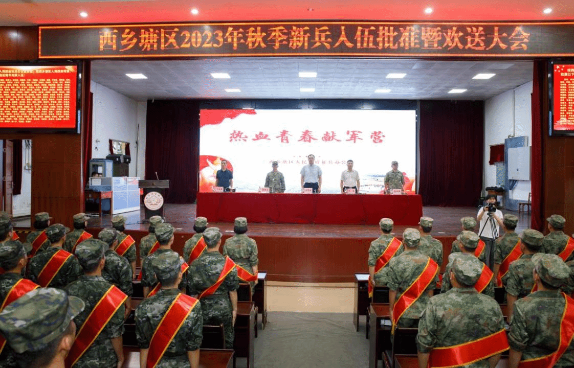 广西建院9月15日讯(党委武装部 文/刘晗蓓 图/西乡塘区武装部宣传科)9月14日下午,南宁市西乡塘区2023年秋季新兵入伍批准暨欢送大会在南宁师范大学举行,城区政府和人民武装部的主要领导出席会议。大会现场经过体格检查、政治考核、身体复查、役前教育训练等环节层层考核、严格选拔,最终乐鱼全球最大体育平台_乐鱼(中国)共有16名在校应征学生被批准光荣入伍,成为中国人民解放军的一员。欢送仪式上,新兵们身披绶带、胸佩红花、军容严整,精神抖擞,展现出新时代青年听从召唤参军报国、...