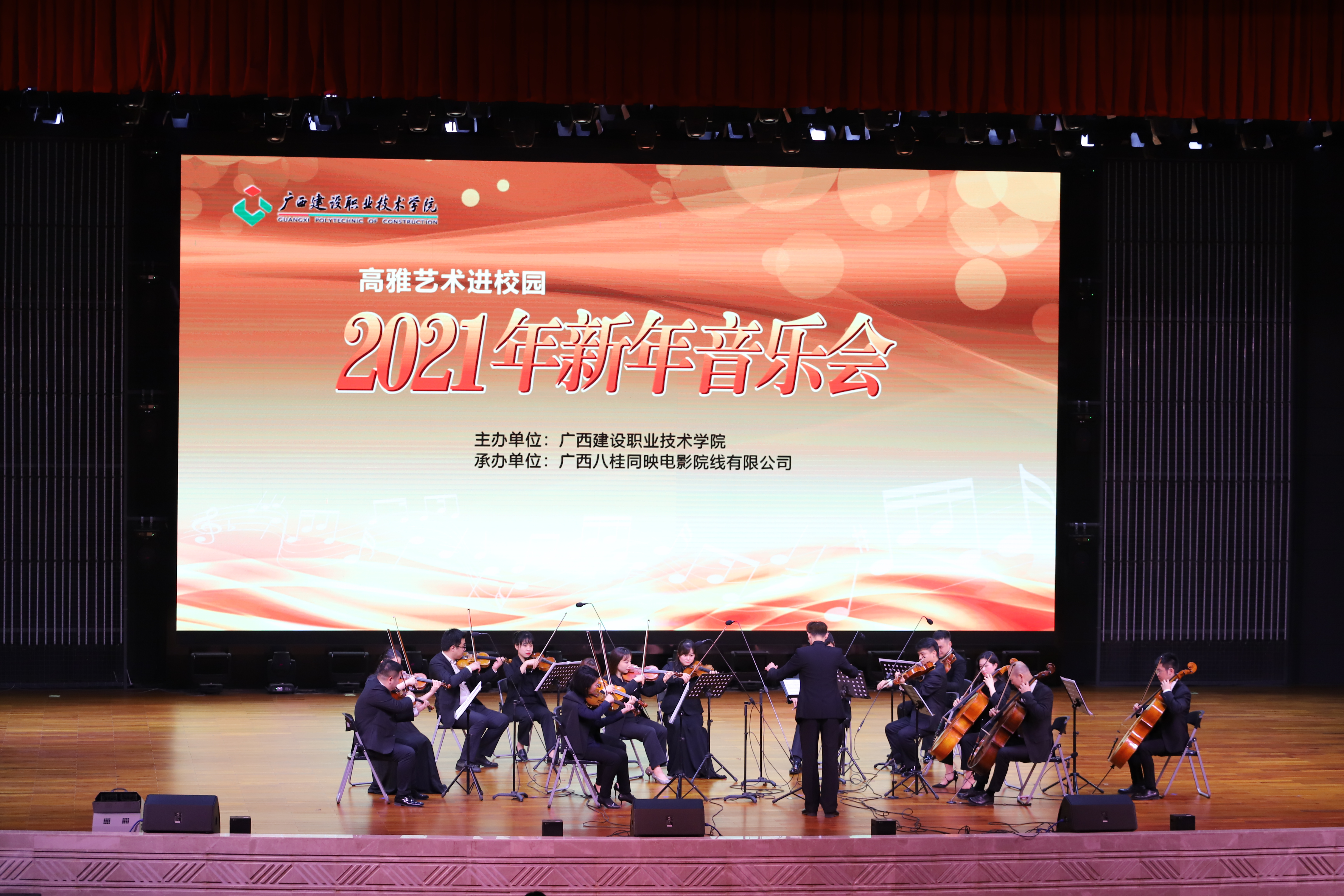 广西建院12月29日讯(记者团 文/刘蔓 图/陈雅欣 李癸昌)为营造健康向上的校园文化氛围,陶冶学生的艺术情操,增强人文素养,2020年12月29日晚,学校在礼堂举办以“高雅艺术进校园”为主题的2021年新年音乐会。 音乐会...