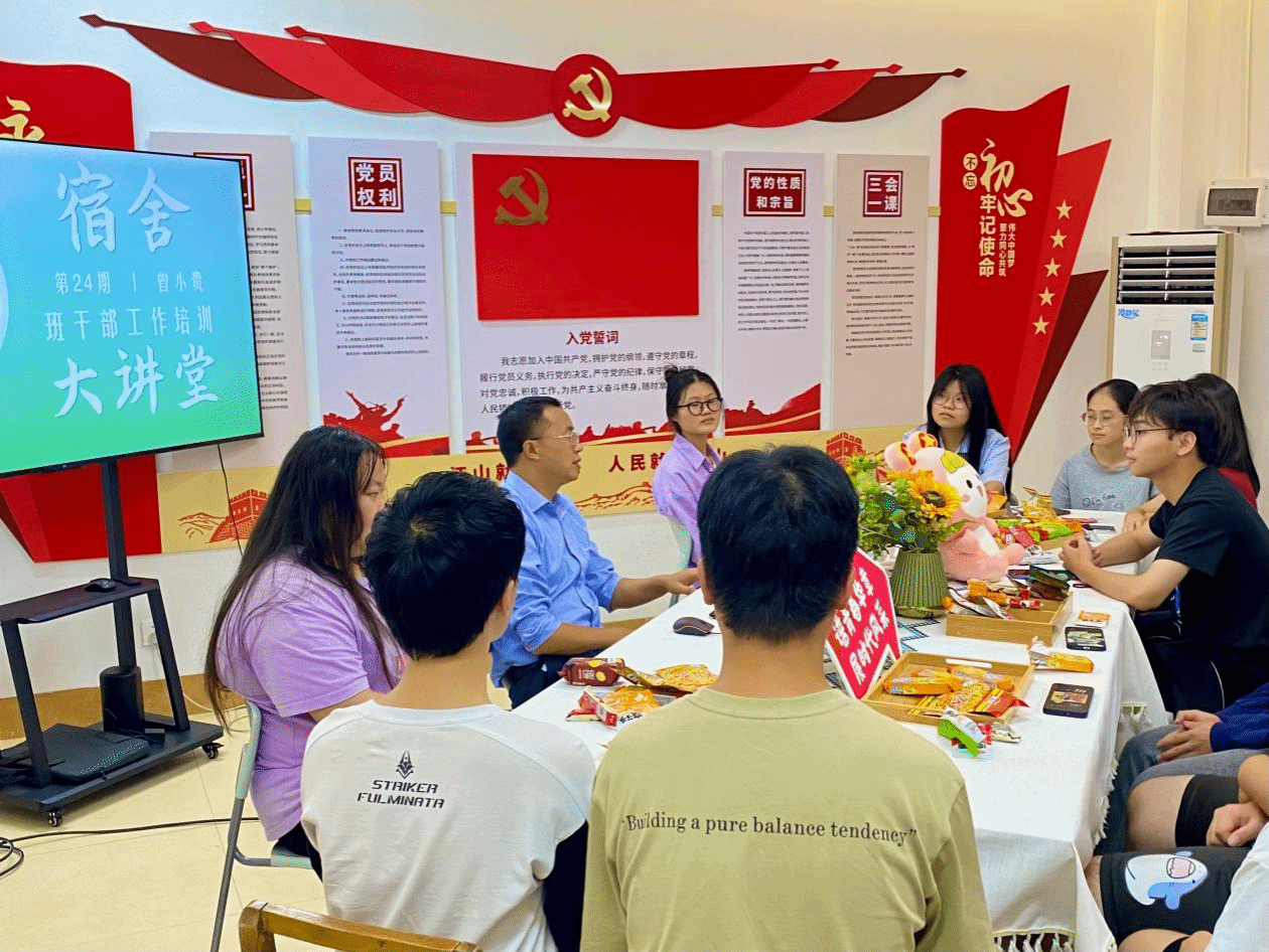 广西建院10月10日讯(管理工程学院 图文/孙文)10月9日晚,管理工程学院“红船精神”学生公寓党建工作室开展第24期宿舍大讲堂,校团委书记曾小贵受邀为该院学生干部作工作培训。本期讲堂聚焦提升学生干部综合素养和为群众服务的本领,加强学生干部队伍建设,推动青年工作走心抓实见效。曾小贵书记结合《乐鱼全球最大体育平台_乐鱼(中国)“第二课堂成绩单”制度实施管理办法(修订)》介绍了上学期管理工程学院“第二课堂成绩单”制度实施情况。...