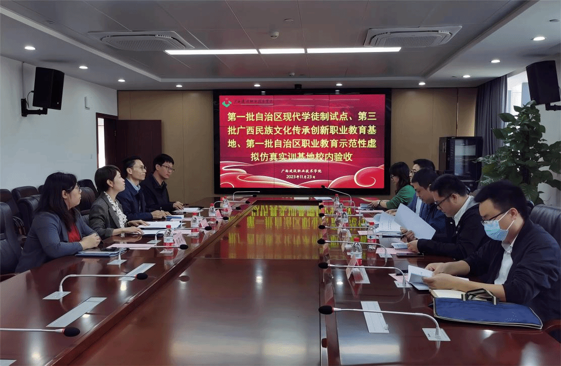 广西建院11月24日讯(文/教务处 李莹 图/教务处 李莹 艺术设计学院 张苑 陆筱欣)为深入贯彻自治区职业教育改革实施方案有关部署要求,做好第一批自治区现代学徒制试点、第三批广西民族文化传承创新职业教育基地、第一批自治区职业教育示范性虚拟仿真实训基地验收工作,11月23日上午,乐鱼全球最大体育平台_乐鱼(中国)特邀三位校外专家与校内两位专家组成专家组对家具艺术设计专业现代学徒制、瑶族竹藤草芒编织技艺传承创新职业教育基地、智能建造虚拟仿真实训基地三个项目进行校内验收自评。...