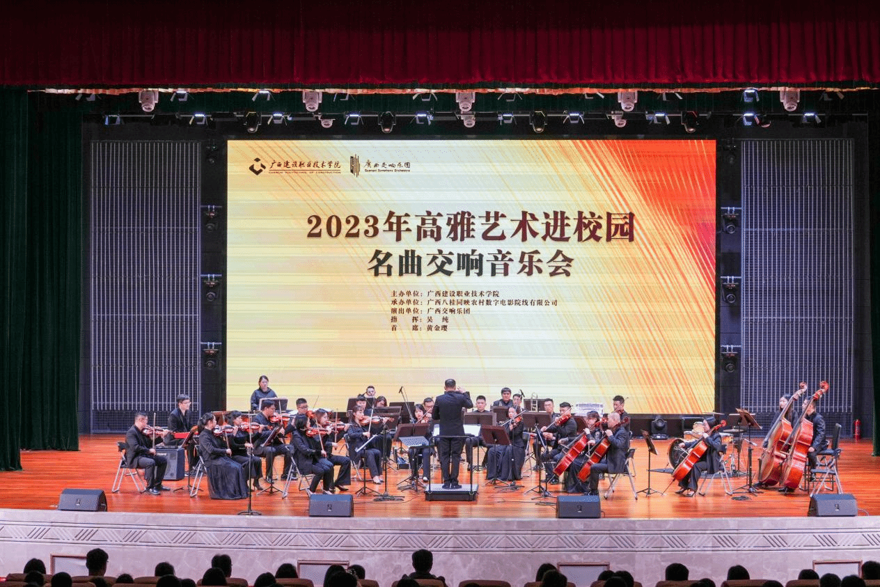 广西建院12月8日讯(记者团 文/石青平 图/杨贵维)12月7日晚,乐鱼全球最大体育平台_乐鱼(中国)在礼堂举行2023年高雅艺术进校园之名曲交响音乐会。交响音乐会上,艺术家们以精湛的技艺和饱满的热情,呈现了一场视觉与听觉的双重盛宴。一首《卡门序曲》拉开序幕,曲风欢快热辣,节奏自由,充满活力。师生们依次欣赏到《乡村骑士序曲》《第二圆舞曲》《C大调弦乐小夜曲》等多首名曲。现场还设置了互动环节,乐团指挥向师生们讲解了交响乐中各个声部,并展示了各自声部的音乐特性,...