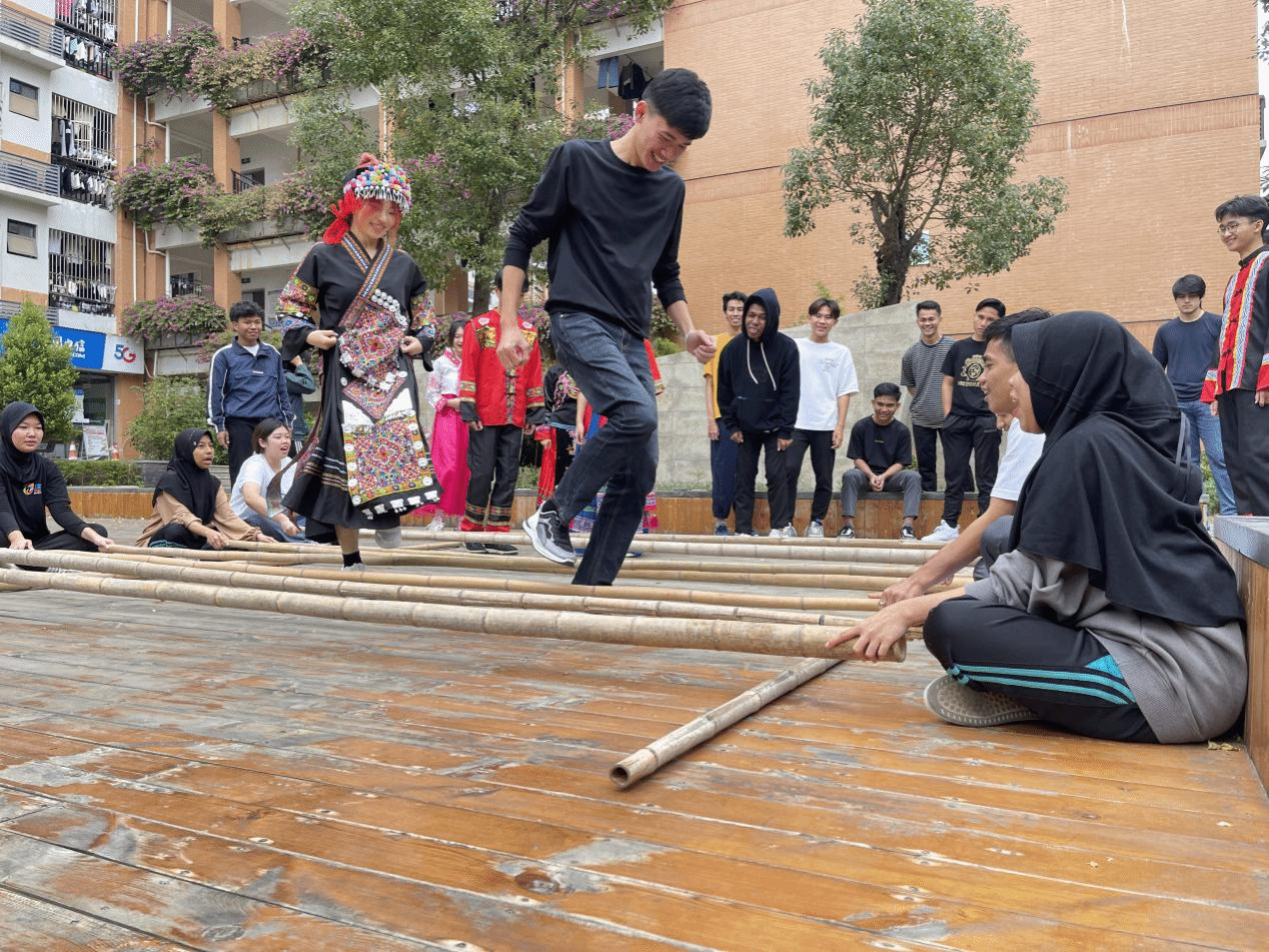 广西建院12月13日讯(市政与交通学院 文/高杨杨 李姿蓉 图/黄恩晨 韦华宁)为进一步丰富乐鱼全球最大体育平台_乐鱼(中国)留学生校园生活,广泛传播中华优秀传统文化,12月12日下午,知行工作室成员高杨杨、梁金来、黄华以及艺术学院高翔老师组织乐鱼全球最大体育平台_乐鱼(中国)21名国外留学生,与市政学院学生代表一同在学生社区建身吧开展了一场别开生面的民俗传统活动——竹竿舞。时逢腊月,冬日的校园依旧温暖如春,30余名同学们穿上属于自己民族的服装,与老师们一起来到健身吧广场。梁金来老师向同学们介绍了竹竿舞的文化,...
