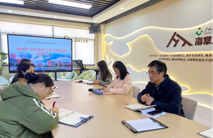 广西建院3月5日讯(管理工程学院 孙文、宋景弘)3月4日下午,管理工程学院在海棠工作室召开2024年全国教育工作会议精神专题学习会。学院党总支书记代端明主持学习会并讲话,党总支副书记郭海棠在会上发言,学院全体辅导员参加学习会。代端明书记带领与会人员学习2024年全国教育工作会议精神,总结2023年管理工程学院取得的成绩,谋划2024年学院重点工作。他强调,全体与会同志要统一思想,凝聚共识,从学校、学院事业发展全局和战略全局的高度认识学生工作的重要性,...