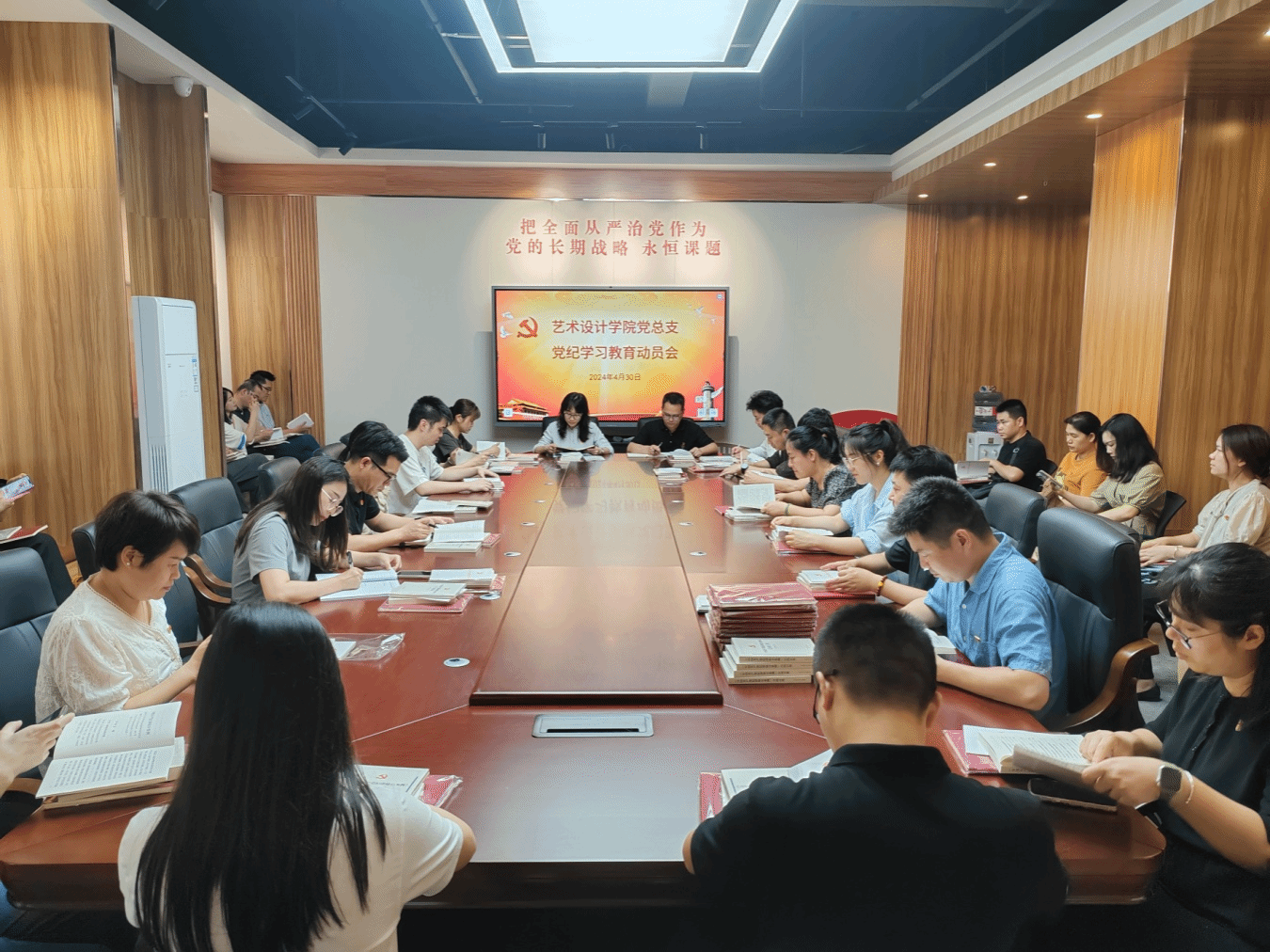 广西建院5月11日讯(艺术设计学院 陈昕)近日,艺术设计学院党总支党纪学习教育动员部署会在学校廉洁教育基地召开。会议由学院党总支陈菲菲书记主持,共49名党员教师参加。陈菲菲书记在动员部署讲话中强调,开展党纪学习教育是今年党的建设工作的一项重要任务,全体党员干部要深入学习贯彻习近平总书记关于加强党的纪律建设的重要论述精神,深刻认识开展党纪学习教育的重大意义,领导干部要带头学习、作出表率,推动学院教师党员学纪、...
