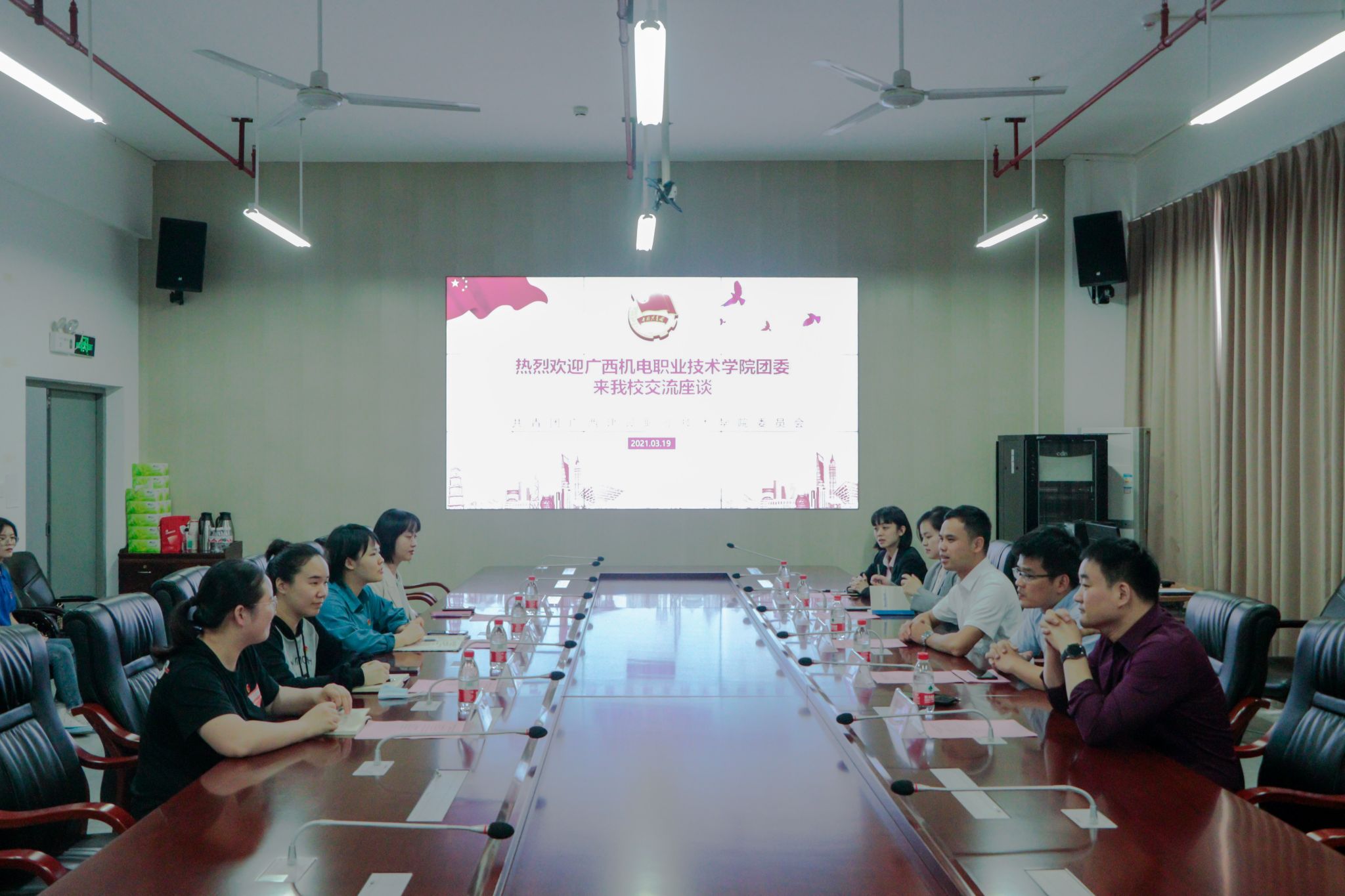 广西建院3月19日讯(团委 宋丽)3月19日上午,广西机电职业技术学院团委书记吴少强一行5人来乐鱼全球最大体育平台_乐鱼(中国)调研交流,乐鱼全球最大体育平台_乐鱼(中国)团委副书记黄秀薇及团委全体老师热情接待来访客人。双方围绕团学组织建设、团属阵地建设以及共青团在“...