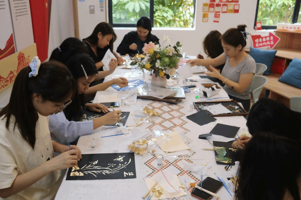 广西建院10月21日讯(管理工程学院 黄欣欣 莫芸瑕)为推进非物质文化遗产传承,弘扬中华优秀传统文化,近日,管理工程学院易班学生工作站在“红船精神”党建工作室开展了烧箔画制作活动,众多学生前来参与,一同领略非遗之美。活动现场活动中,学生充分发挥想象力和创造力,通过打线稿、涂胶水、贴金箔、扫金箔等步骤,将传统工艺与现代审美相结合,以箔为墨,绘制出一幅幅精美绝伦的烧箔画作品。烧箔画制作不仅展现了烧箔画独特的艺术魅力,...