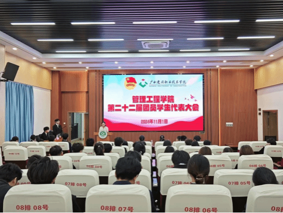 广西建院11月4日讯(管理工程学院 文/黄欣欣 梁甜甜 图/秦思怡 陈振彪)11月1日,管理工程学院第二十二次学生代表大会在二号教学楼701报告厅召开。校团委副书记李姿蓉,学院团总支书记封炫妃、团总支副书记孙文、辅导员代表,学校各学生组织代表以及大会正式代表82人参加会议。 会议现场伴随着庄严的国歌声,大会正式拉开帷幕。管理工程学院团总支书记封炫妃致开幕词。校团委副书记李姿蓉在致辞中向大会的召开表示热烈祝贺,她肯定了过去一学年来管理工程学院学生会在落实学生会改革、...