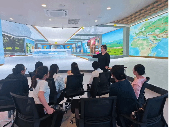 广西建院11月19日讯(马克思主义学院 文/谭臻 图/甘麒燕)为全面提升思政课教师数字化素养,培养数字化资源应用能力,助推思政课信息化建设。近日,马克思主义学院邀请北京神州视景信息技术公司王晓瑜经理在学校党建思政基地开展思政课教师数字化素养提升培训。培训会上,王晓瑜经理现场演示了故宫、“一带一路”、抗美援朝等数字资源包,重点讲解了360°沉浸式数字设备的使用步骤、素材的替换更新、视点和动态路线切换的技巧及在思政课教学中的运用。...