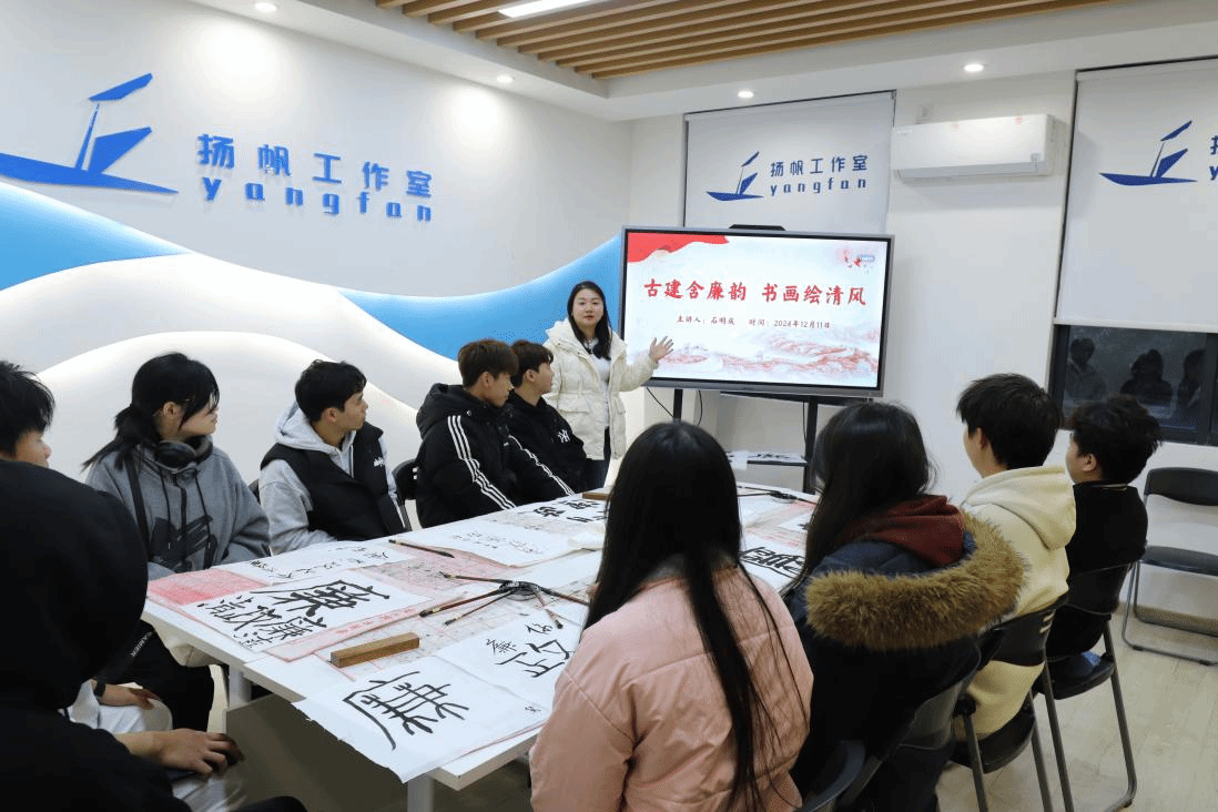 广西建院12月22日讯(土木工程学院讯 文/石明成 图/赵子丞)为进一步弘扬廉洁精神,增强同学们的廉洁意识,近日,土木工程学院在扬帆工作室、党建工作室举办了以“古建含廉韵,书画绘清风”为主题的书法体验活动。本次活动由土木工程学院团总支主办,土木工程学院学生第三党支部承办,活动吸引了近200名师生参与。活动现场石明成老师详细介绍了“廉”字的由来和深刻含义。她结合古乐鱼全球最大体育平台_乐鱼(中国)上雕刻的廉洁印记讲述了其背后的文化意义,带领同学们欣赏蕴含廉洁寓意的书画作品,...
