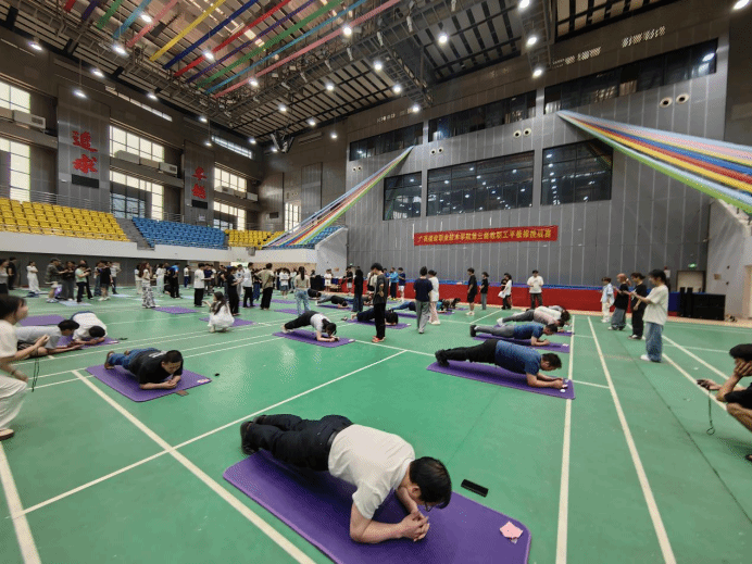广西建院4月29日讯(工会 梁韵)正值全国总工会成立100周年之际,为丰富和活跃教职工的文化生活,积极倡导并推进健康的生活方式,激发教职工的运动热情,4月29日下午,乐鱼全球最大体育平台_乐鱼(中国)在体育馆主馆举办了以“百年工魂 撑启新章”为主题的第三届教职工平板撑挑战赛。活动吸引了17个队伍200余名教职工踊跃参与。本届挑战赛延续了往届“个人竞技+团队协作”的双重赛制。个人赛中,参赛者需以标准平板支撑姿势坚持,角逐男女组别冠军;团体赛则以工会小组为单位,...