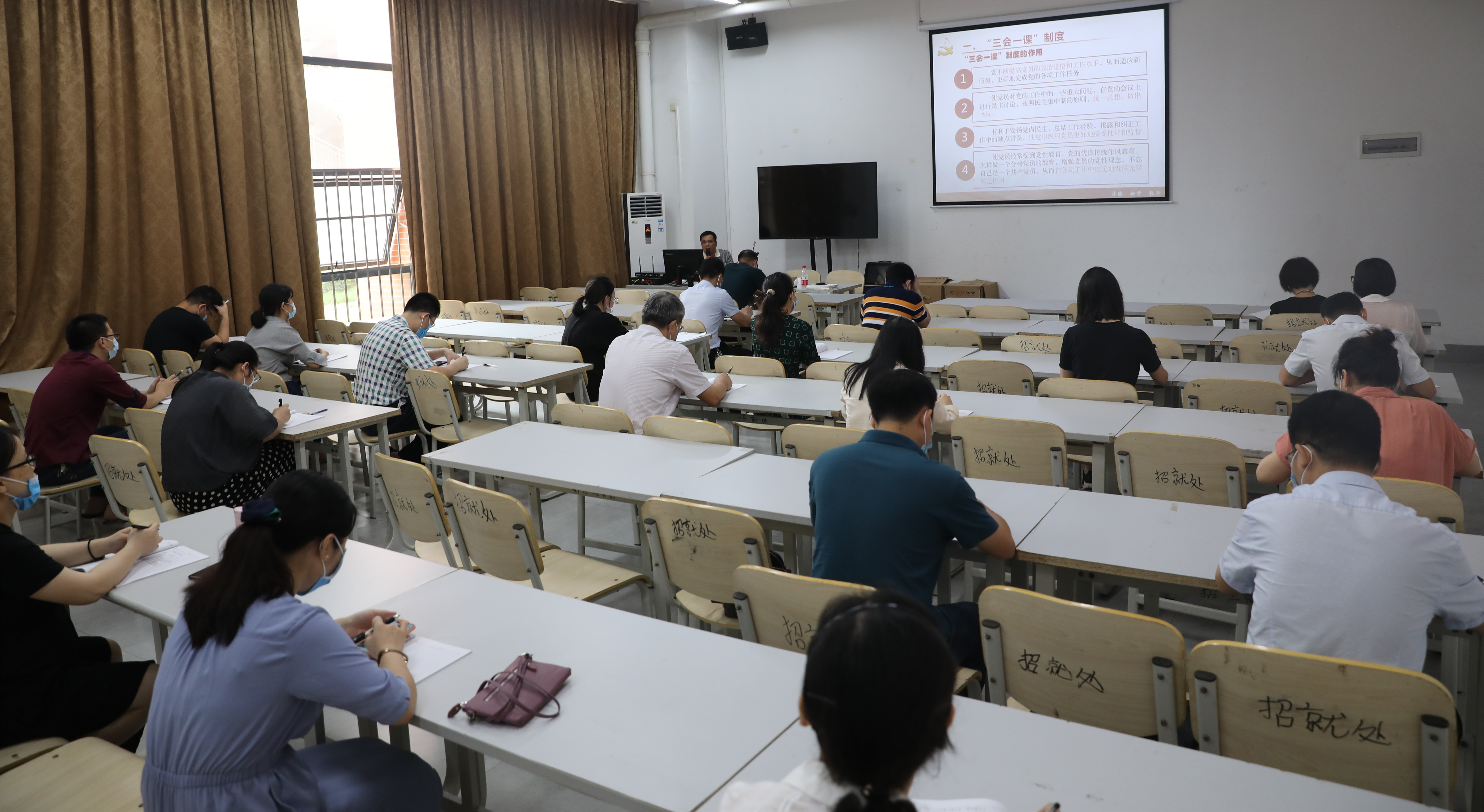 广西建院5月22日讯(党委宣传部 陈熙)5月21日上午,学院直属第二党支部在实训南楼105会议室开展专题党课学习。党课由党委宣传部(党委统战部)部长、支部书记庞松鹤主讲,支部全体党员聆听学习。 庞松鹤部长以“认真...