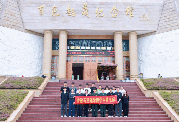 近日,市政与交通学院学生党支部组织师生党员和入党积极分子赴百色开展“追寻红色足迹,砥砺初心使命”主题教育实践活动。通过沉浸式学习,全体成员重温革命历史,锤炼党性修养,接受廉政清风洗礼。在红七军军部旧址(粤东会馆)和百色起义纪念馆,师生们认真聆听讲解,观看历史文物与复原场景,深入了解百色起义的光辉历程和革命先辈的奋斗足迹。一件件实物、一幅幅图片,再现了那段风雨如磐的革命岁月,让大家深刻感受到邓小平、张云逸等老一辈革命家坚定的理想信念与艰苦奋斗的精神。...