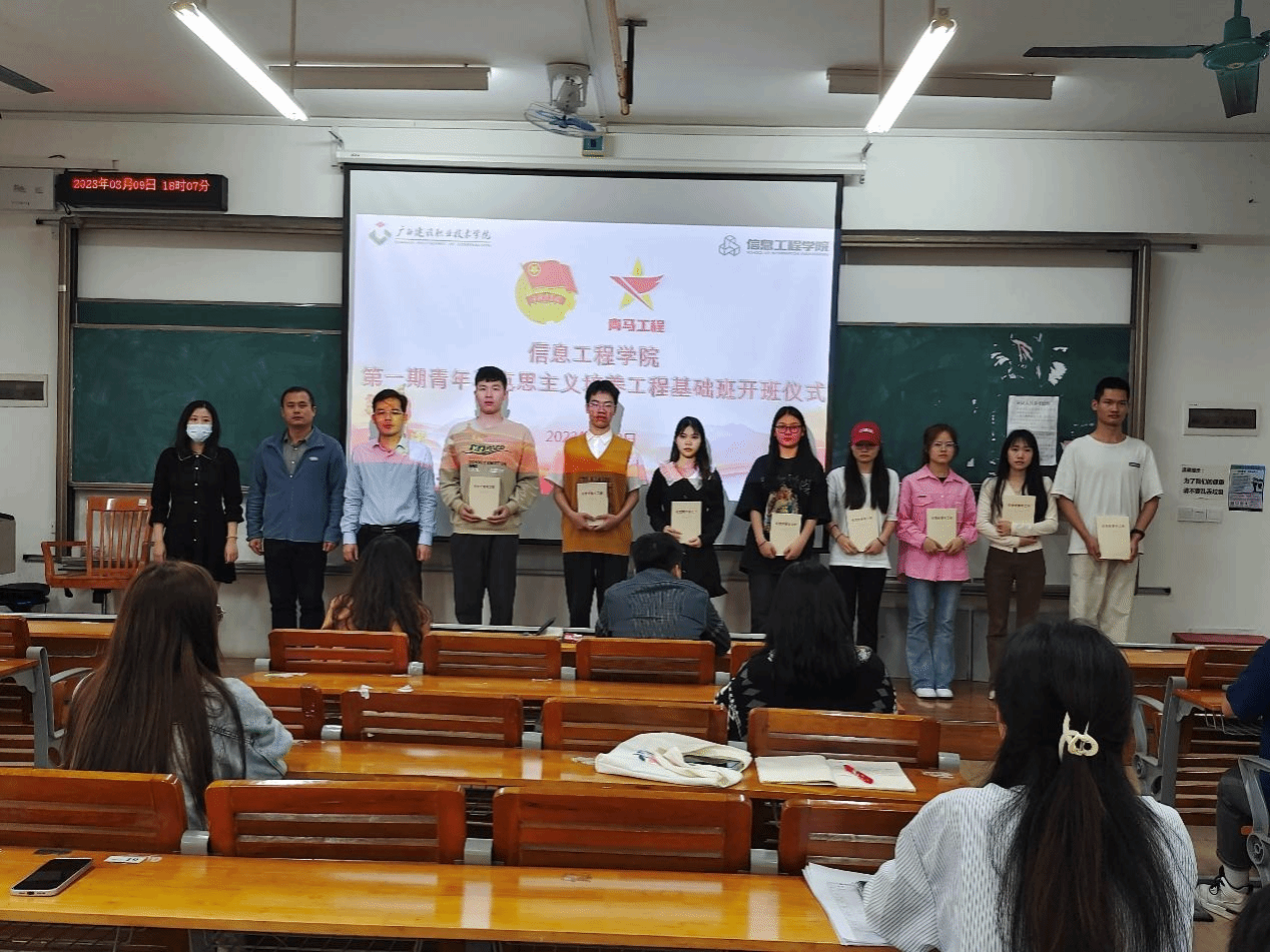 广西建院3月11日讯(信息工程学院 梁晶晶)3月9日下午,信息工程学院在三教606教室举行第一期“青年马克思主义者培养工程”基础班(以下简称“青马工程”基础班)开班仪式。学院团总支书记韦世锋,党务干事毕桐...