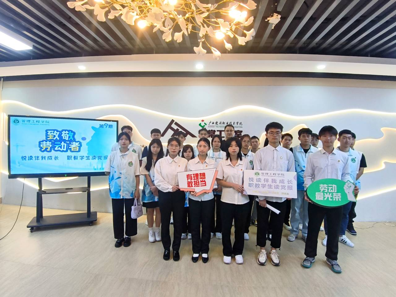 广西建院5月7日讯(管理工程学院 郭海棠 申叶子 李玟艳)为弘扬劳动精神,进一步提升大学生崇尚劳动的认知,管理工程学院于5月7日在海棠工作室举办第9期“悦读伴我成长”职教学生读党报活动,活动采用线上...