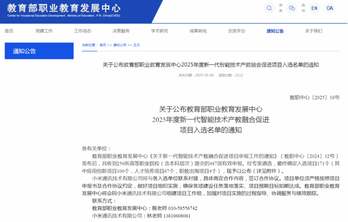 教育部“AI+智慧学习”共建人工智能学院、教育部职业教育发展中心、2025年度新一代智能技术产教融合促进项目立项单位