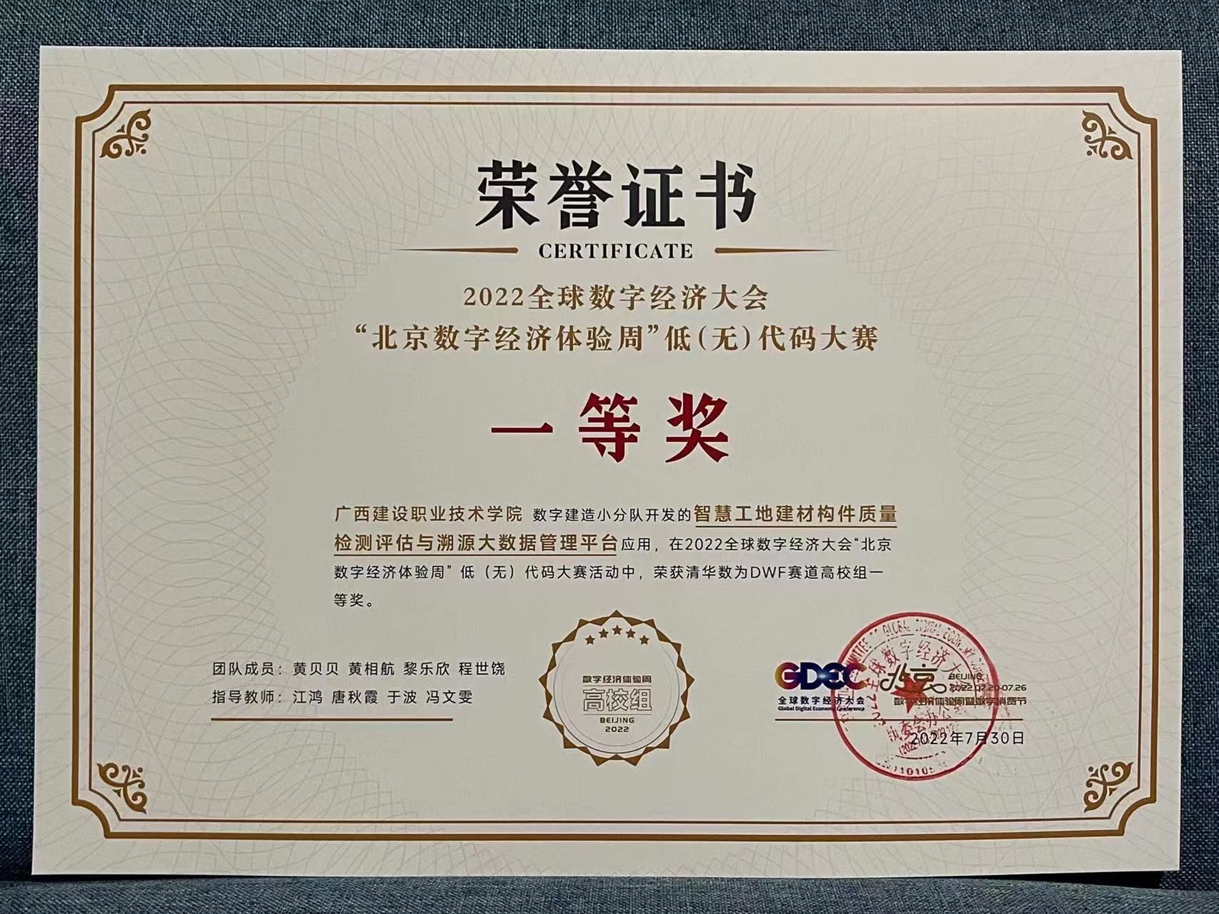 获得“蓝桥杯”全国软件技术专业人才大赛国赛二等奖2项、三等奖5项,区赛一等奖10项以及区赛二等奖、三等奖40余项