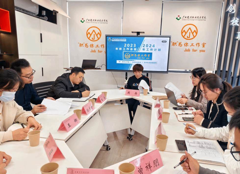 广西建院1月15日讯(设备与环境学院 /曾祥朋 /薛媛媛)为进一步推进辅导员工作室建设,总结2023年育人工作经验,更好地谋划2024年育人工作,1月14日下午,学校“职”为你辅导员工作室召开年终总结会议,学校党委学生工作部部长周舟学工部相关同志及工作室全体成员参加本次会议。